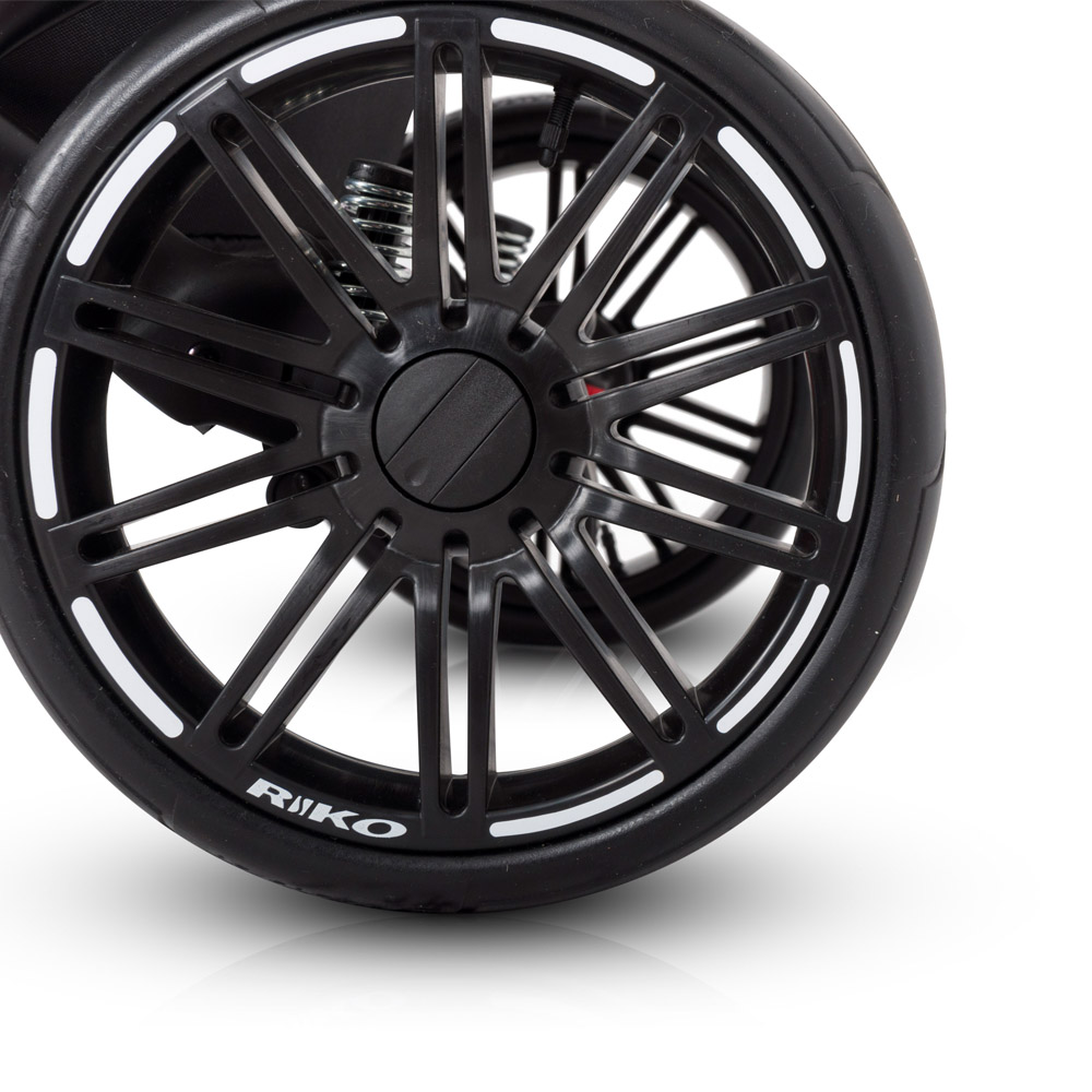 Wózek SIGMA marki RIKO został zaprojektowany w oparciu o Państwa sugestie. Model ten wyróżnia się nowym typem siedziska spacerowego, które posiada dużo wyższe oparcie niż nasze starsze modele i jest niżej osadzone, co ułatwia dziecku dostęp. Dodatkowo SIGMA posiada praktyczny stopnień, dzięki któremu Twojemu dziecku będzie łatwiej wsiadać do wózka, gdy będzie już nieco starsze. Siedzisko posiada nowoczesny i wygodny wytłaczany materacyk wykonany z przyjaznej dla skóry dzianiny. Na szczególna uwagę zasługują również nowej generacji koła bezdętkowe z oponami wykonanymi z poliuretanu. Zapewniają taką samą amortyzację jak koła pompowane, ale są od nich dużo lżejsze, odporniejsze na ścieranie i różnice temperatur, a brak dętki sprawia, że są praktycznie niezniszczalne. Nasze nowe koła zostały wyprodukowane na nasze zlecenie przez producenta z branży Automotive.