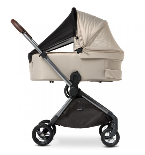 Gondola M6x zawiera bardzo wygodny i oddychający materac. Jest dobrze wentylowana, aby zapewnić optymalną cyrkulację powietrza, co gwarantuje spokojny i bezpieczny sen. Możesz otworzyć wentylację pod spodem, na budce lub na główce gondoli, w zależności od potrzeb. Zintegrowana siatka UV zapewnia dodatkową ochronę przed szkodliwymi promieniami słonecznymi. Gondola może być łatwo przymocowana do ramy wózka za pomocą wbudowanych adapterów i ponownie zdemontowana za pomocą przycisków pamięci.