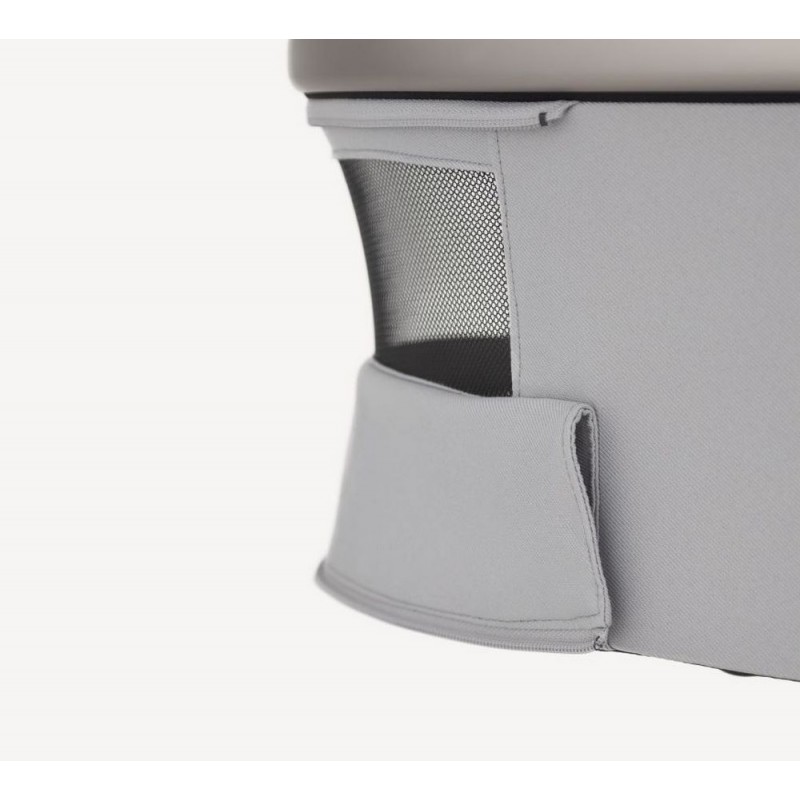 Wózek posiada zaawansowany system wentylacji, zapewniający przepływ powietrza we wszystkich kluczowych miejscach – od budki i przedniej części gondoli po podnóżek i budkę siedziska.
