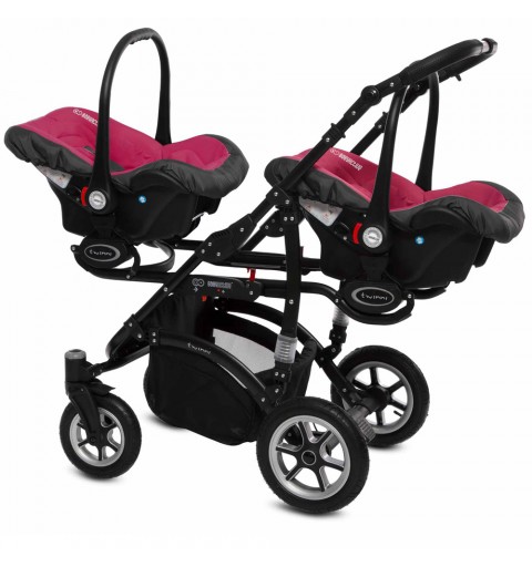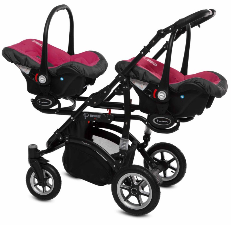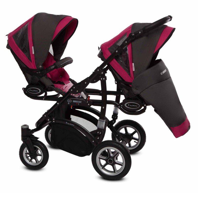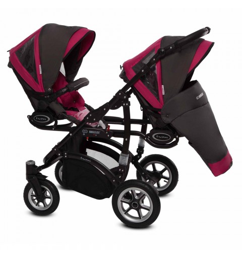 Babyactive Twinni Black - wózek wielofunkcyjny, zestaw 2w1 z opcją 3w1 i 4w1 | 10 Amarant