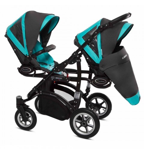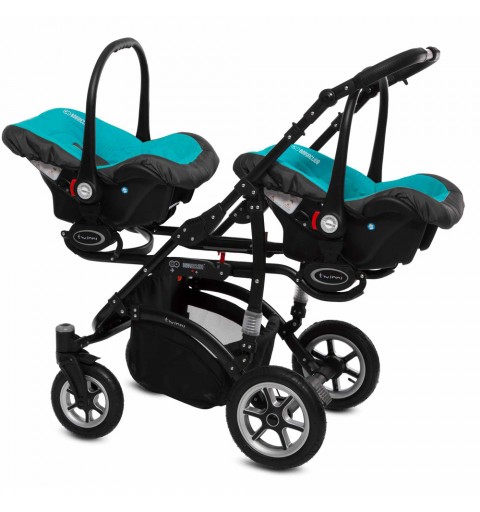 Twinni – to innowacyjny i jedyny w swoim rodzaju wózek specjalnie stworzony dla bliźniąt jak i dwójki dzieci w podobnym wieku. Jest to produkt wytrzymały i bezpieczny. Opatentowana konstrukcja pozwoliła na zmniejszenie gabarytów wózka. W trosce o bezpieczeństwo Waszych pociech wózki zostały wyposażone w system zabezpieczeń pozwalający na utrzymanie kontroli, nawet przy większej gromadce. Dodatkowo Twinny może służyć Państwu jako wózek „rok po roku”, istnieje możliwość wpięcia gondoli razem ze spacerówką(buggy) lub fotelikiem. Ilość kombinacji zależy od Waszych potrzeb. Istotną zaletą jest również możliwość wpinania gondoli, spacerówki i fotelika przodem lub tyłem do kierunku jazdy. Pamiętaj aby przed rozpoczęciem użytkowania zapoznać się z instrukcją obsługi.