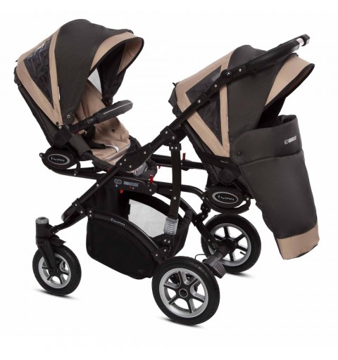 Babyactive Twinni Black - wózek wielofunkcyjny, zestaw 2w1 z opcją 3w1 i 4w1 | 12 Beige