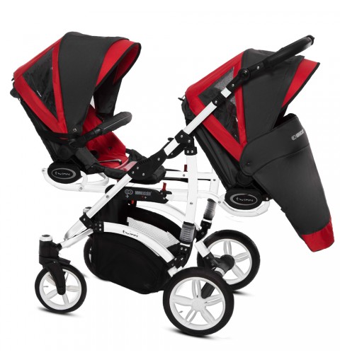 Babyactive Twinni White - wózek wielofunkcyjny, zestaw 2w1 z opcją 3w1 i 4w1 | 08 Rosso