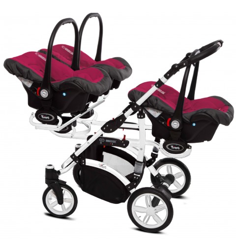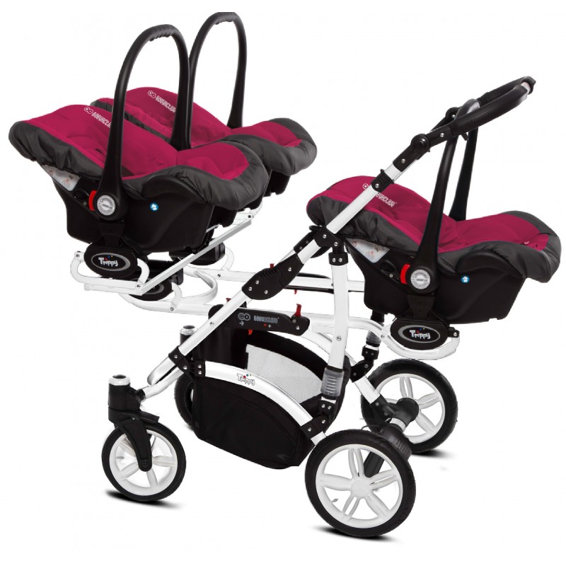 Babyactive Trippy White - wózek wielofunkcyjny, zestaw 2w1 z opcją 3w1 i 4w1 | 10 Amarant