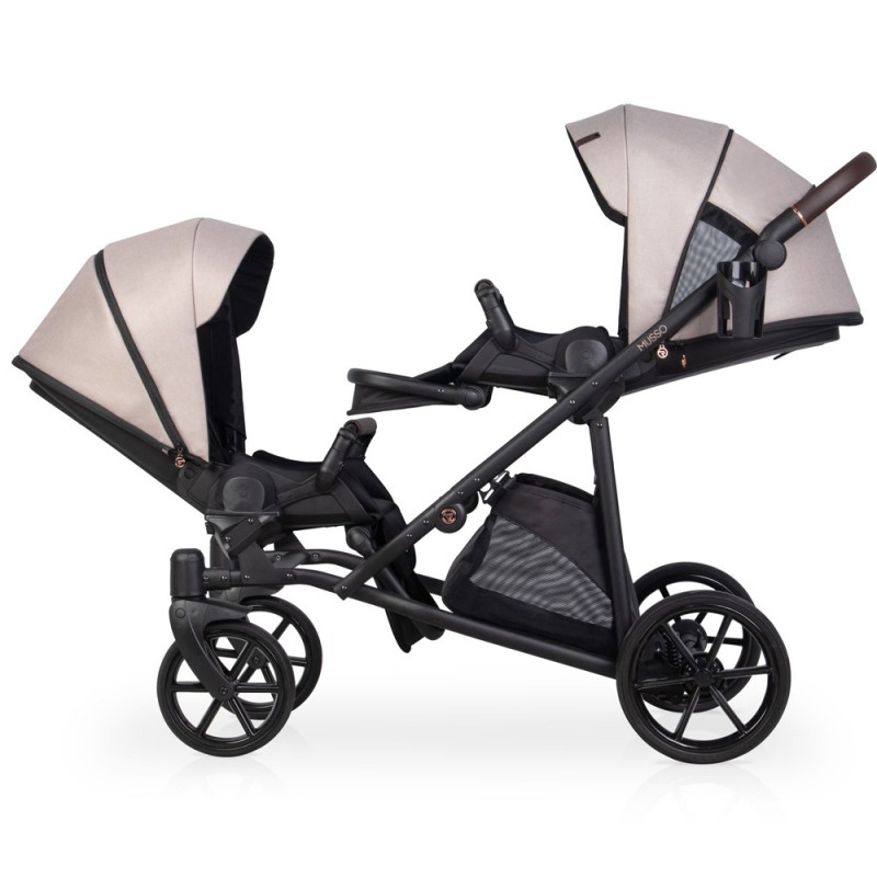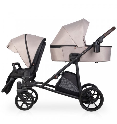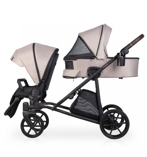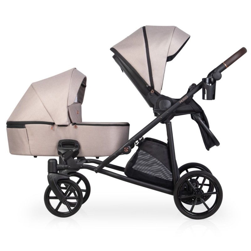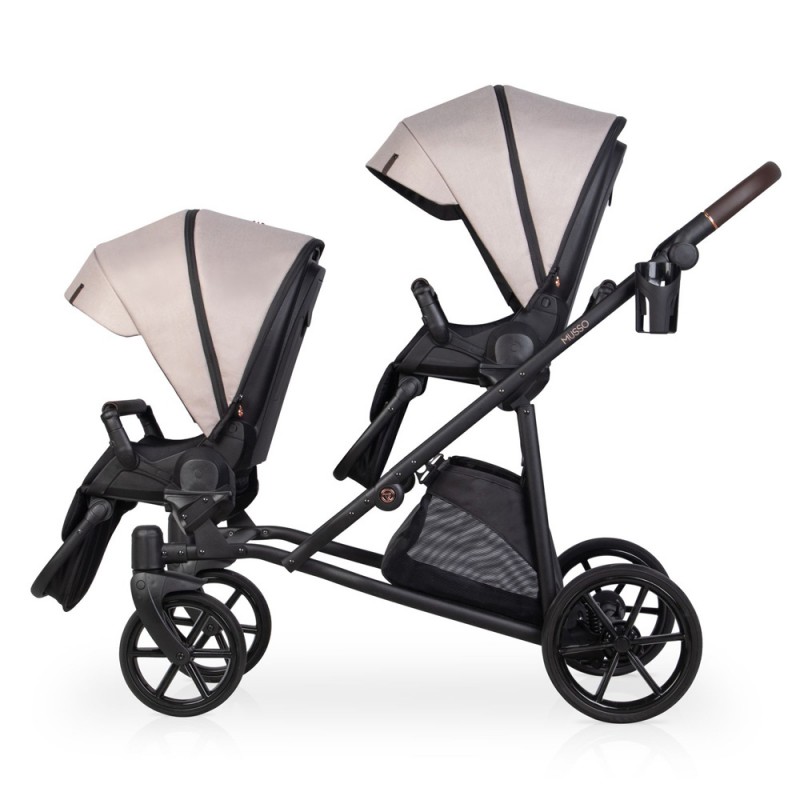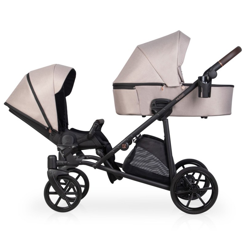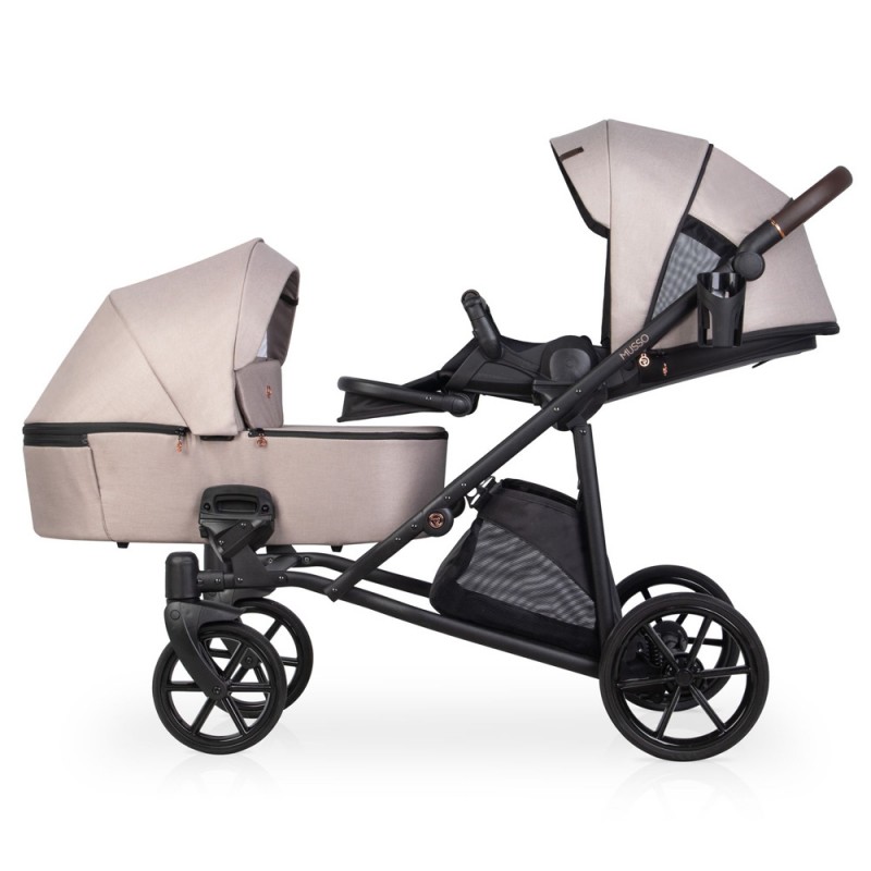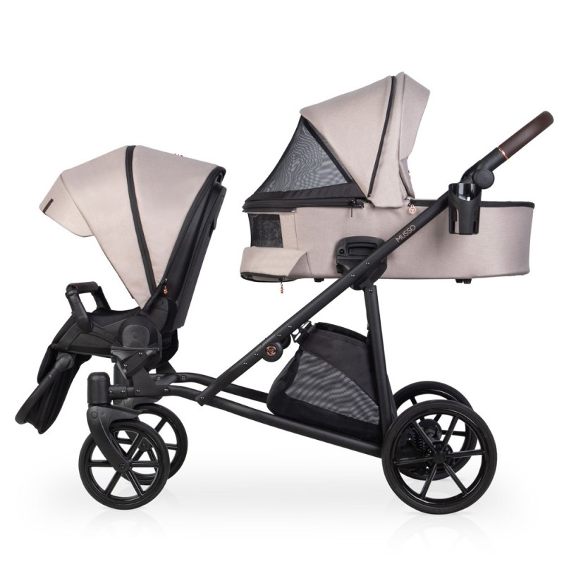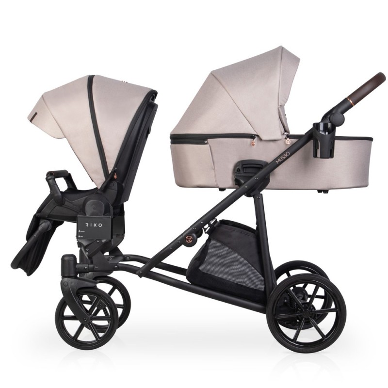 Riko Musso - wózek bliźniaczy, zestaw 2w1 z opcją 3w1 i 4w1 | 01 Taupe