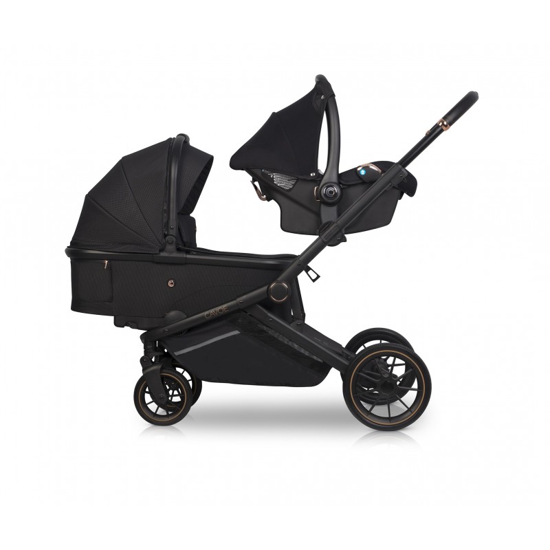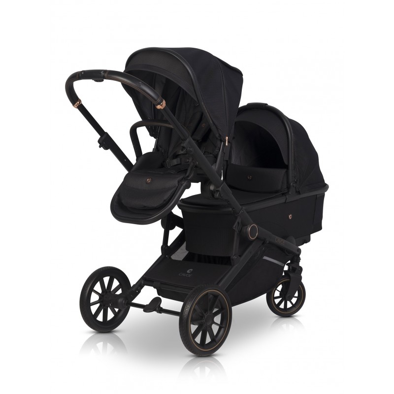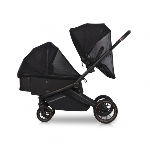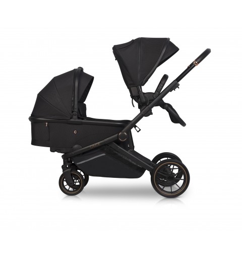Wózek posada możliwość dokupienia jednej lub dwóch gondoli dla stworzenia wózka 2w1, rok po roku czy wózka bliźniaczego. Dodatkowo można za pomocą adapterów dopiąć foteliki. Dzięki takim rozwiązaniom wózek możemy dostosować do potrzeb każdego rodzica z podwójnym szczęściem. Gondole, foteliki i adaptery do dokupienia osobno.