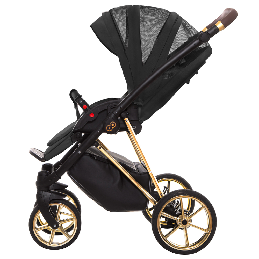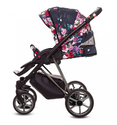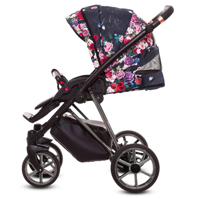 Siedzisko spacerówki możemy zamontować przodem i tyłem do kierunku jazdy oraz składać przodem wraz z stelażem wózka. Dodatkowa wkładka na siedzisku wykonana z miękkiej dzianiny. Oryginalny pokrowiec na nogi dobrze zabezpieczy dziecko na jesienno zimowe spacery. Pasy 5-punktowe z regulacją i miękkimi osłonkami. Barierka bezpieczeństwa regulowana 360 stopni z możliwością odpięcia z jednej jak i z drugiej strony, obszyta eko-skórą - łatwa w czyszczeniu tak sam jak i podnóżek spacerówki. Folia przeciwdeszczowa pasująca do spacerówki. Tapicerka wykonana z impregnowanej tkaniny, łatwa w czyszczeniu, posiada filtr UV.