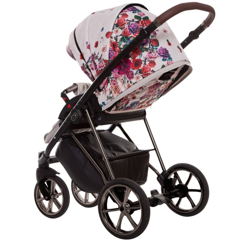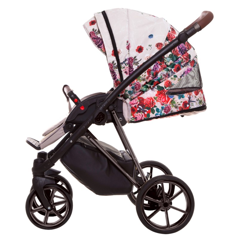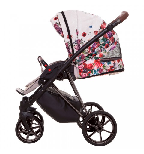 Siedzisko spacerówki możemy zamontować przodem i tyłem do kierunku jazdy oraz składać przodem wraz z stelażem wózka. Dodatkowa wkładka na siedzisku wykonana z miękkiej dzianiny. Oryginalny pokrowiec na nogi dobrze zabezpieczy dziecko na jesienno zimowe spacery. Pasy 5-punktowe z regulacją i miękkimi osłonkami. Barierka bezpieczeństwa regulowana 360 stopni z możliwością odpięcia z jednej jak i z drugiej strony, obszyta eko-skórą - łatwa w czyszczeniu tak sam jak i podnóżek spacerówki. Folia przeciwdeszczowa pasująca do spacerówki. Tapicerka wykonana z impregnowanej tkaniny, łatwa w czyszczeniu, posiada filtr UV.