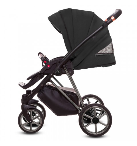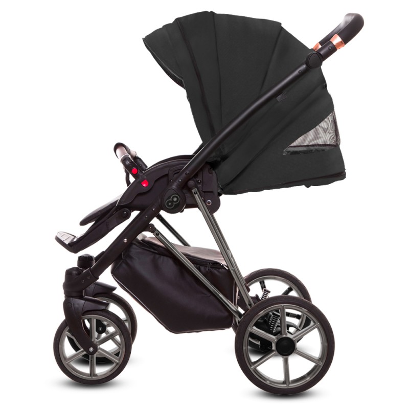 Siedzisko spacerówki możemy zamontować przodem i tyłem do kierunku jazdy oraz składać przodem wraz z stelażem wózka. Dodatkowa wkładka na siedzisku wykonana z miękkiej dzianiny. Oryginalny pokrowiec na nogi dobrze zabezpieczy dziecko na jesienno zimowe spacery. Pasy 5-punktowe z regulacją i miękkimi osłonkami. Barierka bezpieczeństwa regulowana 360 stopni z możliwością odpięcia z jednej jak i z drugiej strony, obszyta eko-skórą - łatwa w czyszczeniu tak sam jak i podnóżek spacerówki. Folia przeciwdeszczowa pasująca do spacerówki. Tapicerka wykonana z impregnowanej tkaniny, łatwa w czyszczeniu, posiada filtr UV.