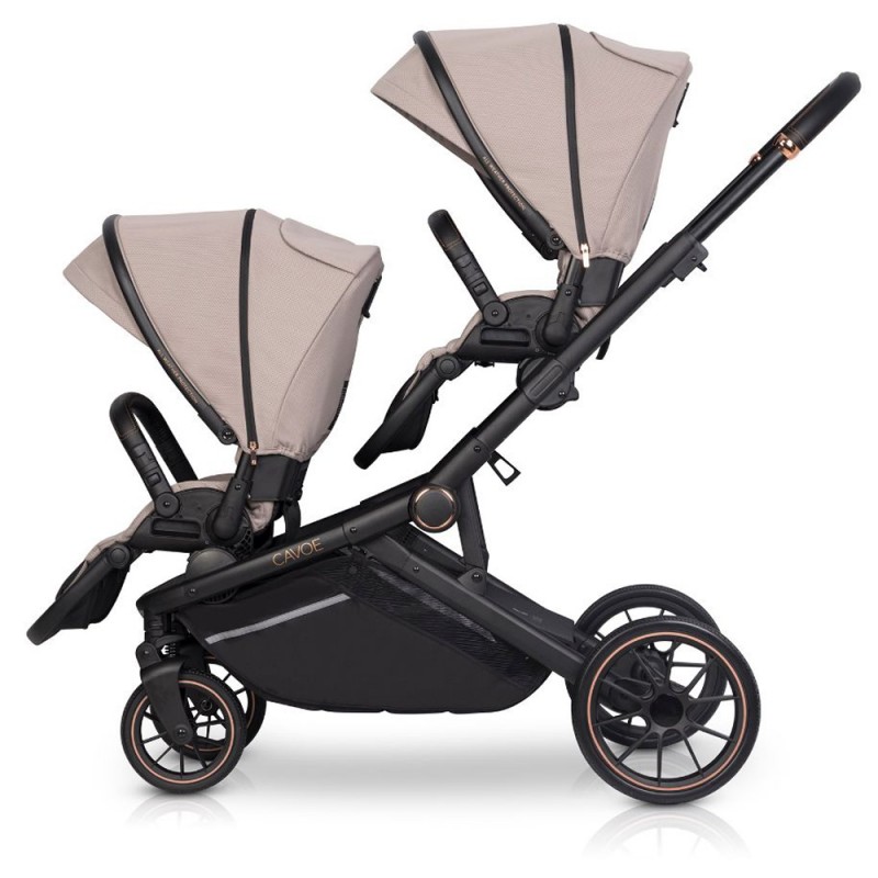 AVEC marki CAVOE jest wózkiem dla dwójki dzieci typu tandem. Oferowany jest jako wózek spacerowy z dwoma pełnowymiarowymi siedziskami z możliwością dokupienia jednej lub dwóch pełnowymiarowych gondoli. Dodatkowo marka CAVOE oferuje możliwość dokupienia uniwersalnych adapterów, za pomocą, których możesz wpiąć jeden lub dwa foteliki samochodowe.