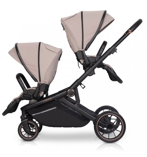Wózek posada możliwość dokupienia jednej lub dwóch gondoli dla stworzenia wózka 2w1, rok po roku czy wózka bliźniaczego. Dodatkowo można za pomocą adapterów dopiąć foteliki. Dzięki takim rozwiązaniom wózek możemy dostosować do potrzeb każdego rodzica z podwójnym szczęściem. Gondole, foteliki i adaptery do dokupienia osobno.