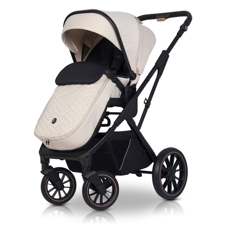 Tapicerkę wózka cechuje wyjątkowy komfort użytkowania dzięki funkcji powiększanej budki z wizjerem oraz dodatkowym daszkiem. Zapewnia to optymalizację warunków termicznych wewnątrz i jednocześnie daje możliwość obserwacji dziecka z zewnątrz. Najwyżej jakości wytrzymałe, impregnowane tkaniny chronią przed wiatrem, zimnem jak i promieniami słonecznymi.