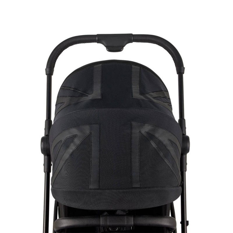 -nowoczesna, stylowa kolorystyka: głęboka czerń z także czarnym wzorem flagi brytyjskiej na zewnętrznej stronie daszka (Oxford Black)