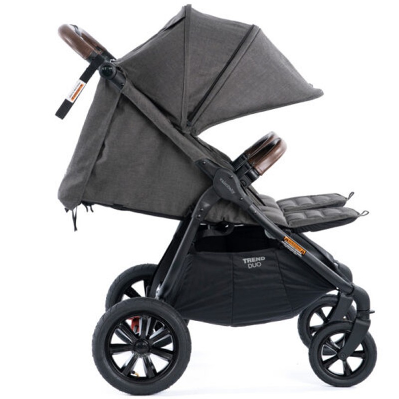 Pełna funkcjonalność, szykowna elegancja i nowoczesny design w formie podwójnego wózka dziecięcego Valco Baby Trend Duo Sport. Wózek ten może pełnić funkcję zarówno klasycznego wózka bliźniaczego, jak i wózka „rok po roku” – dla dwojga dzieci w różnym wieku. Trend Duo Sport to lekka i nowoczesna konstrukcja, która charakteryzuje się wysokimi właściwościami jezdnymi oraz łatwym w obsłudze mechanizmem składania do kompaktowych rozmiarów. Dwa szerokie, wygodne i niezależnie regulowane siedziska z dwoma rozszerzanymi budkami pozwalają dostosować każde z nich do indywidualnych potrzeb obu małych podróżników. Wózek Trend Duo to podwójna funkcjonalność oraz elegancja dla Ciebie i Twoich małych podróżników.
