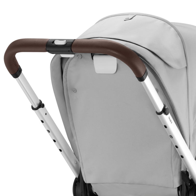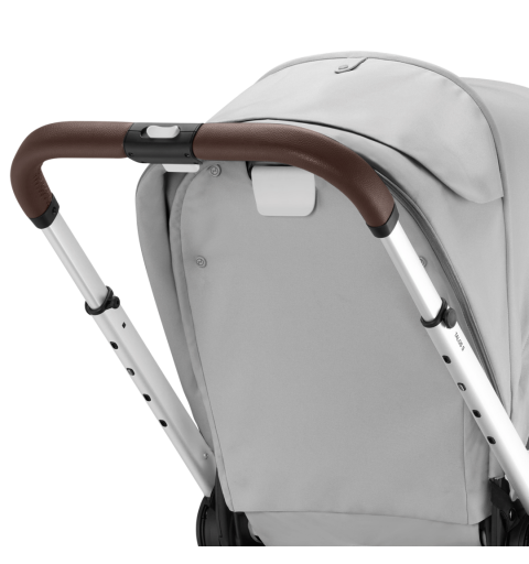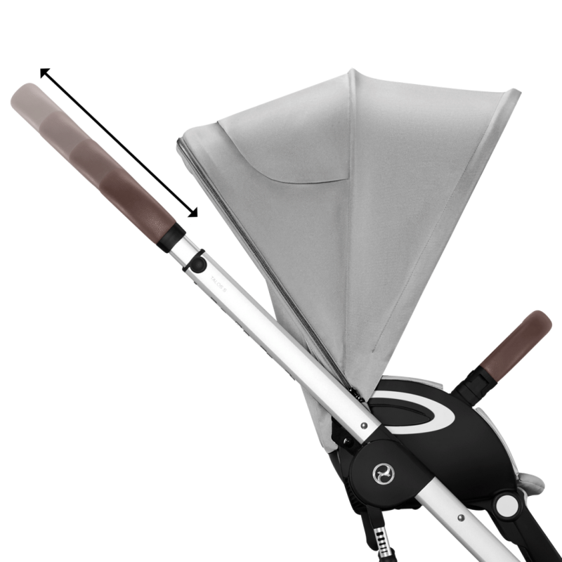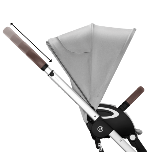 Rączką pozwala ustawić wysokość prowadzenia wózka zgodnie ze wzrostem rodzica dzięki łatwej regulacji jej wysokości jedną ręką.