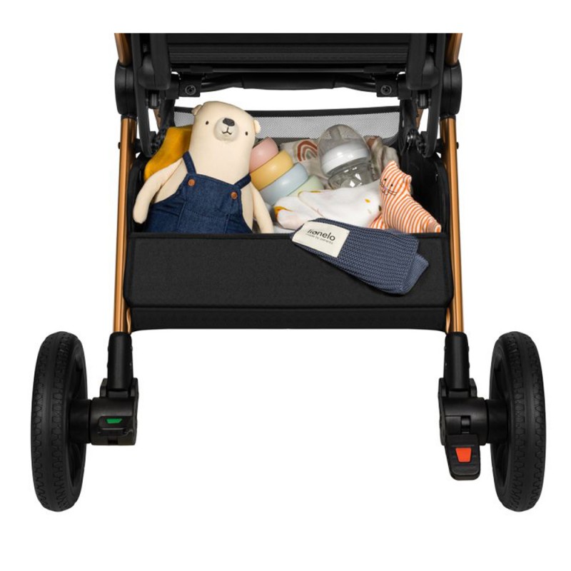 Wózek spacerowy Lionelo Cloe Black Onyx został wyposażony w wodoodporną budkę XXL z filtrem UPF50+, która ochroni malucha w zmienną pogodę, a w słoneczny dzień zapewni przyjemny cień. W dużym, pojemnym koszu pod siedziskiem zmieścisz zakupy lub wszystkie potrzebne podczas spaceru akcesoria. Praktyczny uchwyt na kubek przytrzyma Twój ulubiony napój. Dla Waszego bezpieczeństwa dodaliśmy do wózka odblaskowe elementy. W razie pojawienia się zabrudzeń, tapicerkę i kosz możesz wyprać, a ramę możesz przetrzeć wilgotną ścierką.