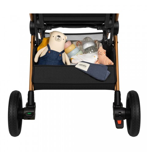 Model jest odpowiedni dla dzieci od 6 miesięcy do 4 roku życia. Duże, bezobsługowe koła zostały wykonane z wytrzymałej powłoki PU. Przednie obracają się o 360°, co ułatwia manewrowanie wózkiem. Amortyzacja z przodu i z tyłu zapewnia maluchowi komfort podczas jazdy. Wbudowany system click&ride umożliwia rodzicom stawianie długich kroków, a hamulec nożny zagwarantuje bezpieczny postój.