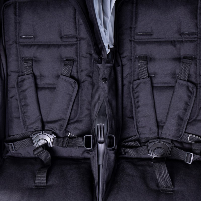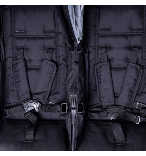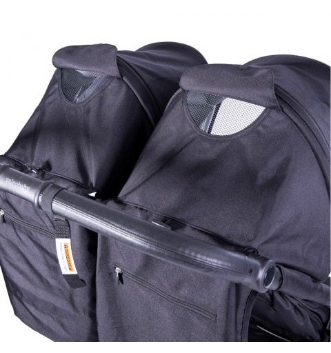 Wózek posiada dwa siedziska wyposażone w indywidualne mechanizmy regulacji oparcia. Niezależna, paskowa regulacja pozwala na indywidualne i wielopozycyjne dopasowanie każdego siedziska do potrzeb przewożonego w nim dziecka. Siedziska są regulowane aż do pozycji leżącej i posiadają dwie rozkładane budki.