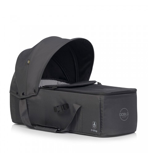 Gondolę montuje się na rozłożonym na płasko siedzisku wózka za pomocą systemu zapięć. Gondola do wózka DOBLO posiada aż 2 niezależne systemy mocowań: karabińczyki oraz taśmy zaciskowe. Dzięki nim, gondola jest pewnie osadzona w wózku i gwarantuje bezpieczeństwo dziecku.