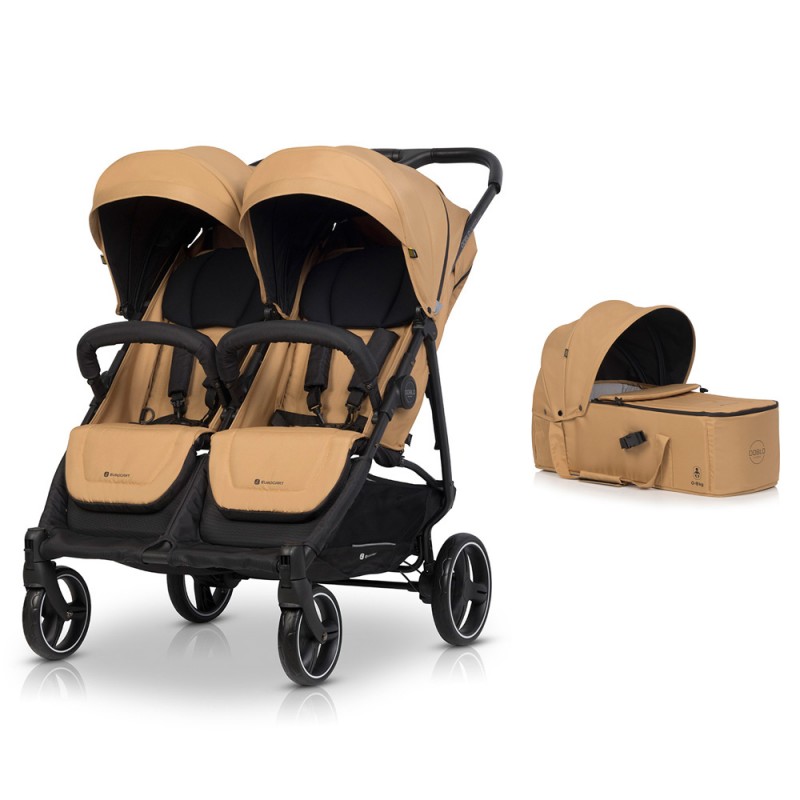 jest wózkiem spacerowym z dwoma siedziskami dla dzieci do 22 kg. Można jednak przekształcić go w wózek wielofunkcyjny 2 w 1 dla bliźniąt dokupując dodatkowo dwie miękkie gondole (wkłady niemowlęce) i odpowiednio przekształcając siedziska lub wózek będący kombinacją jednego siedziska spacerowego dla starszego dziecka do 22 kg i jednej gondoli dla młodszego dziecka o wadze do 9 kg. To wszystko sprawia, że DOBLO marki EURO CART jest jednym z najbardziej wszechstronnych wózków na rynku.