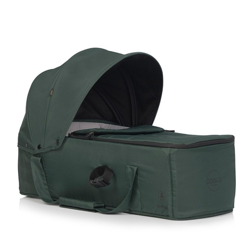 Gondolę montuje się na rozłożonym na płasko siedzisku wózka za pomocą systemu zapięć. Gondola do wózka DOBLO posiada aż 2 niezależne systemy mocowań: karabińczyki oraz taśmy zaciskowe. Dzięki nim, gondola jest pewnie osadzona w wózku i gwarantuje bezpieczeństwo dziecku.
