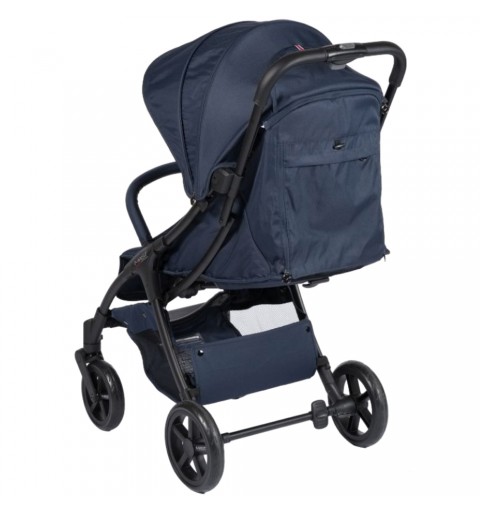 Dobrze wyściełane siedzisko ma łatwo rozkładane oparcie, a podnóżek można regulować w dwóch pozycjach. Możesz regulować oparcie w trzech różnych pozycjach jedną ręką. Pozycja siedząca jest całkowicie pionowa, aby zapewnić dziecku swobodę ruchów.