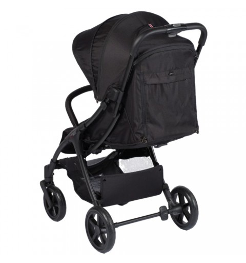 Dobrze wyściełane siedzisko ma łatwo rozkładane oparcie, a podnóżek można regulować w dwóch pozycjach. Możesz regulować oparcie w trzech różnych pozycjach jedną ręką. Pozycja siedząca jest całkowicie pionowa, aby zapewnić dziecku swobodę ruchów.