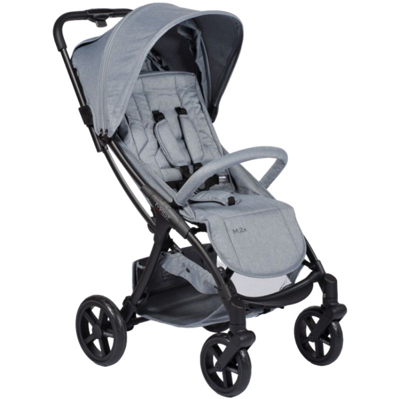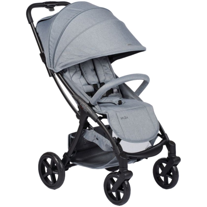 Większe przednie koła zostały zamontowane, aby zapewnić najlepszą opcję podczas jazdy w terenie. Koła można zdemontować, tak aby po złożeniu zamienić wózek M.2x w kompaktowy wózek spacerowy, który można łatwo przechowywać jako bagaż podręczny.