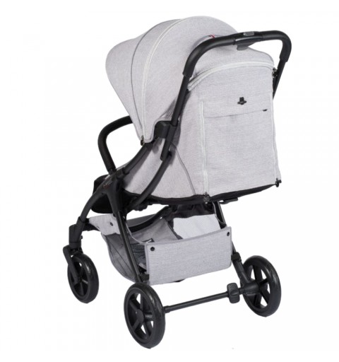 Dobrze wyściełane siedzisko ma łatwo rozkładane oparcie, a podnóżek można regulować w dwóch pozycjach. Możesz regulować oparcie w trzech różnych pozycjach jedną ręką. Pozycja siedząca jest całkowicie pionowa, aby zapewnić dziecku swobodę ruchów.