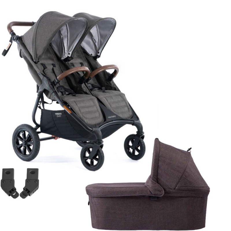 Pełna funkcjonalność, szykowna elegancja i nowoczesny design w formie podwójnego wózka dziecięcego Valco Baby Trend Duo. Wózek ten może pełnić funkcję zarówno klasycznego wózka bliźniaczego, jak i wózka „rok po roku” – dla dwojga dzieci w różnym wieku. Trend Duo to lekka i nowoczesna konstrukcja, która charakteryzuje się wysokimi właściwościami jezdnymi oraz łatwym w obsłudze mechanizmem składania do kompaktowych rozmiarów. Dwa szerokie, wygodne i niezależnie regulowane siedziska z dwoma rozszerzanymi budkami pozwalają dostosować każde z nich do indywidualnych potrzeb obu małych podróżników. Wózek Trend Duo to podwójna funkcjonalność oraz elegancja dla Ciebie i Twoich małych podróżników.