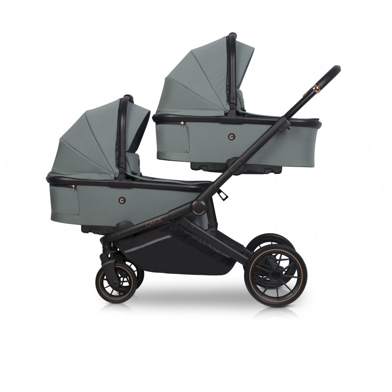 Wózek posada możliwość dokupienia jednej lub dwóch gondoli dla stworzenia wózka 2w1, rok po roku czy wózka bliźniaczego. Dodatkowo można za pomocą adapterów dopiąć foteliki. Dzięki takim rozwiązaniom wózek możemy dostosować do potrzeb każdego rodzica z podwójnym szczęściem. Gondole, foteliki i adaptery do dokupienia osobno.