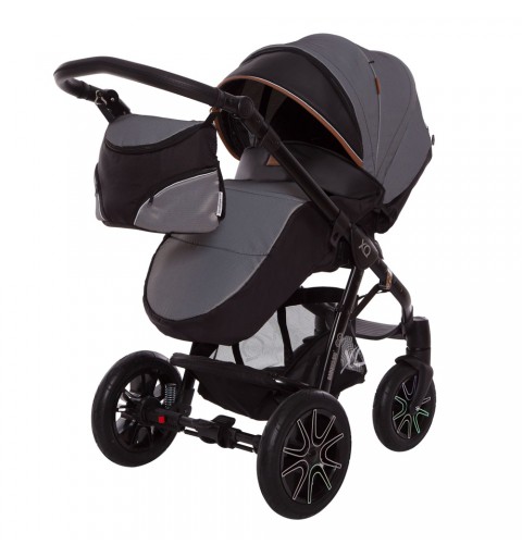 Siedzisko spacerówki możemy zamontować przodem i tyłem do kierunku jazdy oraz składać przodem wraz z stelażem wózka. Podnóżek jest regulowany w kilku stopniach. Regulowane oparcie spacerówki w 4 stopniach do pełno leżącej pozycji. Dodatkowa wkładka na siedzisku wykonana z miękkiej dzianiny. Przedłużana budka zapobiega przed wiatrem i promieniami słońca, w budce jest dodatkowo okienko wentylacyjne. Oryginalny pokrowiec na nogi dobrze zabezpieczy dziecko na jesienno zimowe spacery. Pasy 5-punktowe z regulacją i miękkimi osłonkami. Barierka bezpieczeństwa regulowana 360 stopni z możliwością odpięcia z jednej jak i z drugiej strony, obszyta eko-skórą - łatwa w czyszczeniu tak sam jak i podnóżek spacerówki. Folia przeciwdeszczowa pasująca do spacerówki. Tapicerka wykonana z impregnowanej tkaniny, łatwa w czyszczeniu, posiada filtr UV.