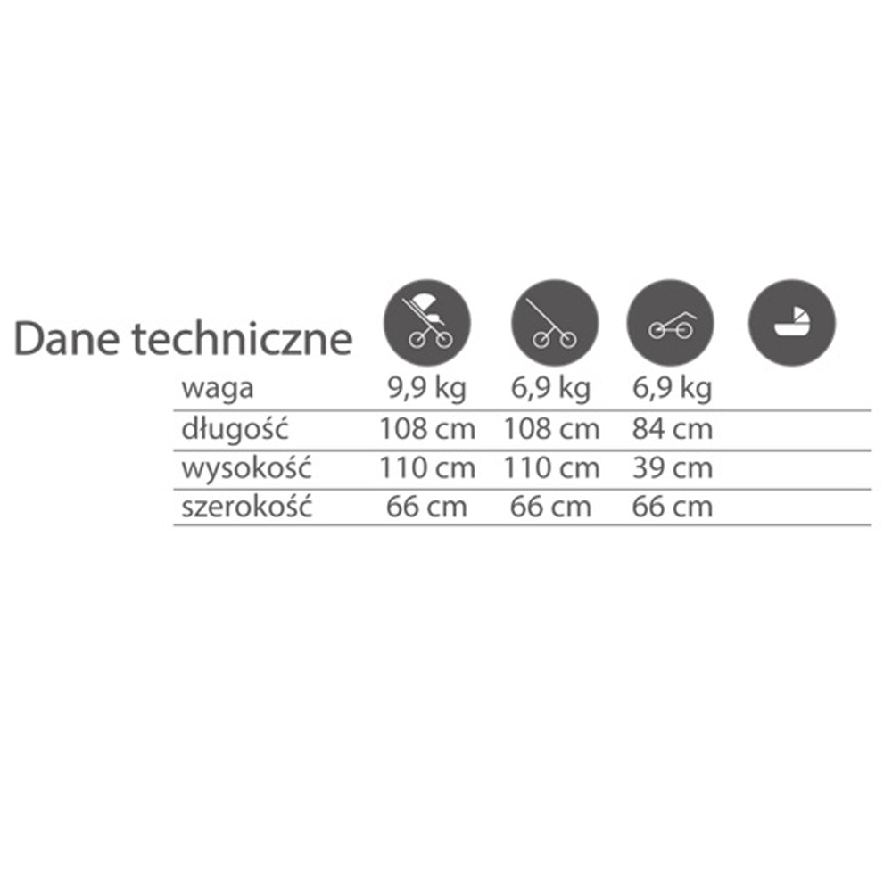 - Waga wózka z siedziskiem spacerowym: 13,3 kg,