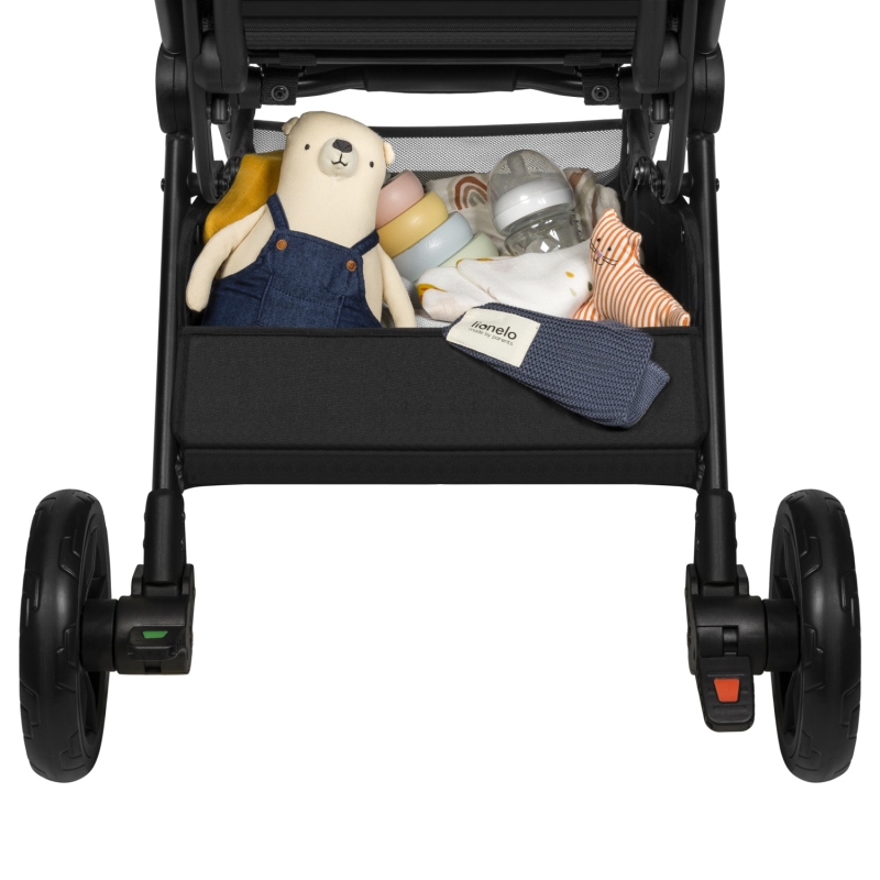 Wózek spacerowy Lionelo Cloe Black Onyx w prosty sposób złożysz jedną ręką. Możesz też skorzystać z systemu auto-folding - po naciśnięciu przycisku, wózek złoży się sam. Bez problemu zmieścisz go nawet w niewielkim bagażniku samochodowym. Wytrzymała, aluminiowa rama waży tylko 8,2 kg. Wózek możesz łatwo przenieść na ramieniu. Z myślą o tym dołączyliśmy do zestawu specjalny pokrowiec i pas.
