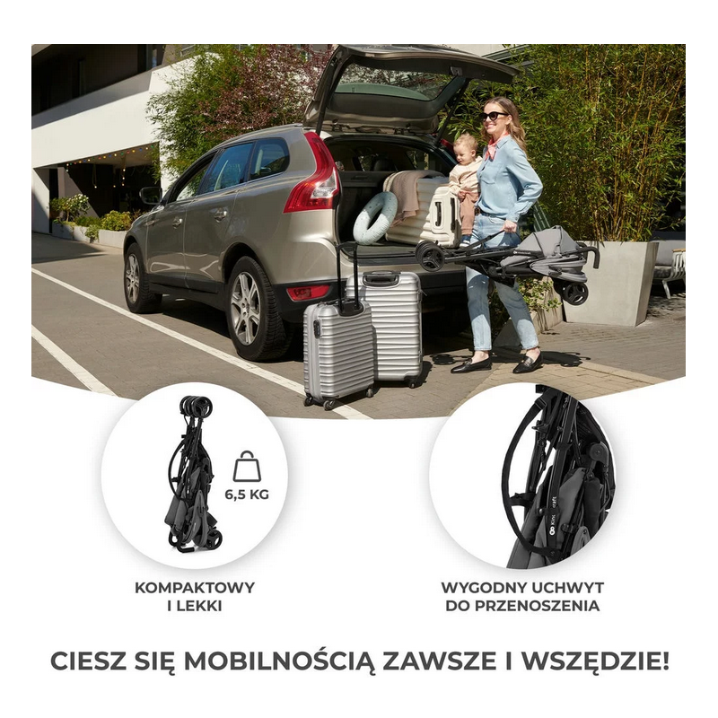 TIK to lekka spacerówka typu parasolka, którą złożysz w kilka sekund. Waży zaledwie 6,5 kg, co czyni z niej idealnego towarzysza podróży, np. na dłuższe wakacje. Wózek spacerowy TIK bez problemu sprawdzi się na lotnisku, w pociągu czy komunikacji miejskiej. Dla ułatwienia przenoszenia spacerówkę wyposażono w wygodną rączkę. Spacerówka ma stopniową regulację oparcia aż do pozycji leżącej oraz regulowany podnóżek. Lekkich, nieprzebijalnych kół nie musisz pompować, a w razie potrzeby zablokujesz dwa przednie do jazdy po trudniejszym terenie, np. po nierównej drodze. Mają amortyzację, doskonałą na nierówne płyty chodnikowe. Powiększana budka ochroni malucha przed słońcem, wiatrem i deszczem, a pojemny kosz zmieści wszystkie potrzebne podczas spaceru zakupy.