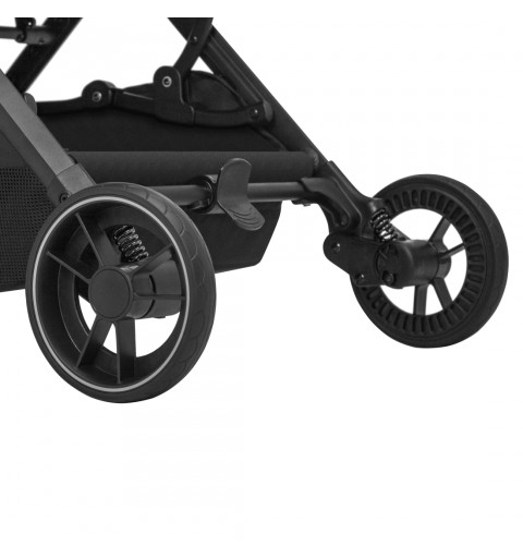 Gumowe opony z bieżnikiem doskonale spełniają swoje zadanie i zachowują doskonały wygląd przez cały okres użytkowania wózka, dzięki wysokiej odporności na zużycie.