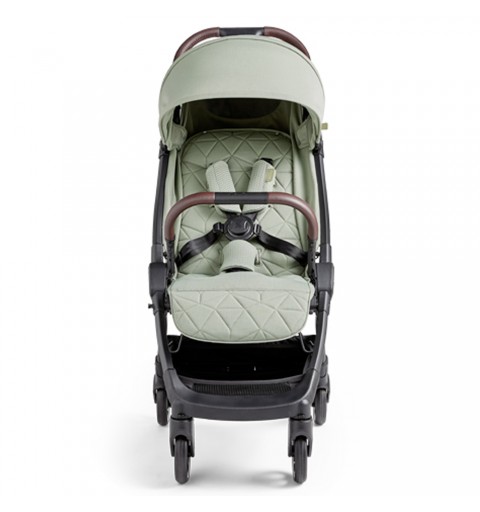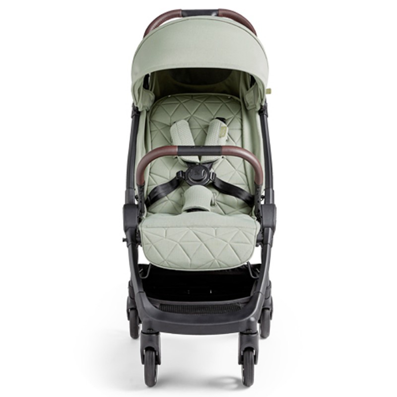 w doskonały system amortyzacji na 4 koła, który doskonale tłumi drgania i wstrząsy wywoływane jazdą po nierównej nawierzchni, a dodatkowo ułatwia wjeżdżanie na wysokie krawężniki. Clic 2.0 zaprojektowano z nowoczesnymi trendami. Wyjątkowe, eleganckie i odświeżone kolory z pewnością przypadną do gustu nowoczesnym rodzicom. 5-punktowe pasy bezpieczeństwa pokryte są miękkimi nakładkami w dopasowanym do wózka kolorze. Miękki i przyjemny w dotyku pałąk wykonany ze skóry ekologicznej zapewni dziecku dodatkowe bezpieczeństwo.
