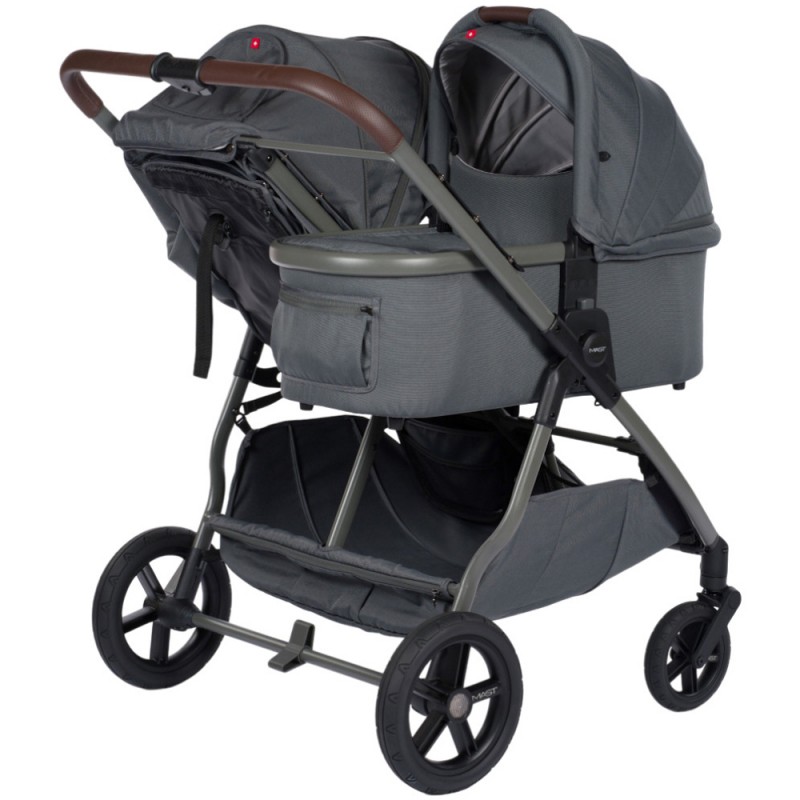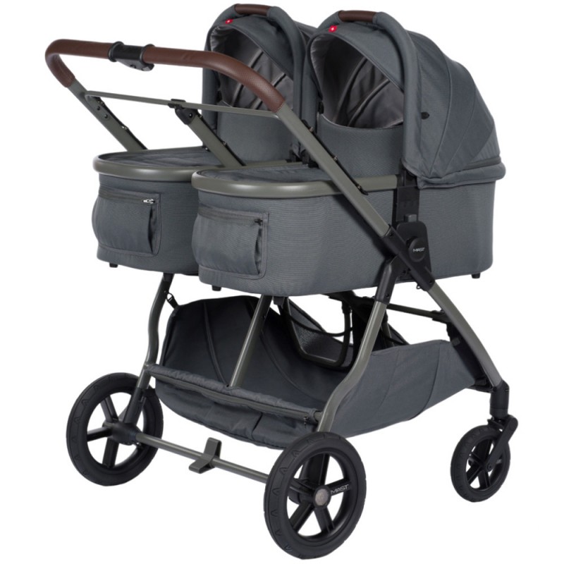 MAST Swiss Design M.Twin x - wózek bliźniaczy, zestaw 2w1 z opcją 3w1 i 4w1 z regulacją rączki | Volcanic Ash Light