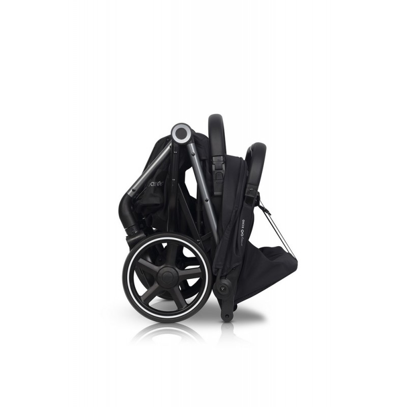 (dwa punkty składania) wózek ECHO składa się do rozmiaru niewielkiej kostki, mimo że po rozłożeniu jest dużym wygodnym wózkiem spacerowym. Co ważne, system składania obsługiwany jest jedną ręką, a wózek samodzielnie stoi po złożeniu. Elementy tapicerki nie dotykają do ziemi, więc nie zostaną przypadkowo zabrudzone. Wózek posiada również automatyczną blokadę, która pozwala wygodnie przenosić go po złożeniu.