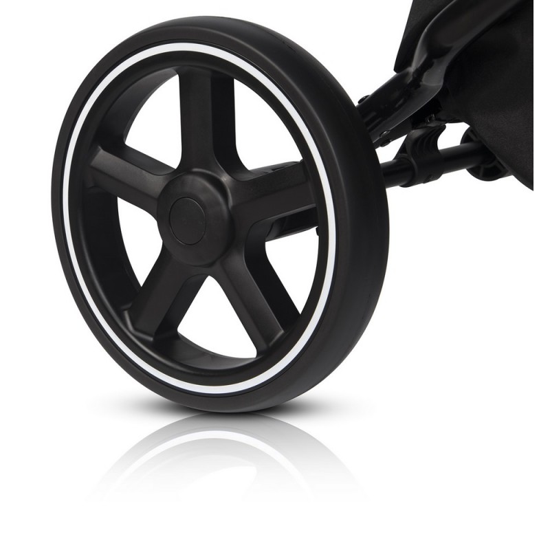 Innowacyjny system 3 amortyzatorów na tylnej osi wózka i 3 amortyzowanych przednich kół pozwala na komfortową jazdę na różnych nawierzchniach. Tylne sprężyny zostały poddane specjalnemu procesowi hartowania, aby dłużej zachowywały swoją sprężystość nawet przy maksymalnym obciążeniu 44 kg.