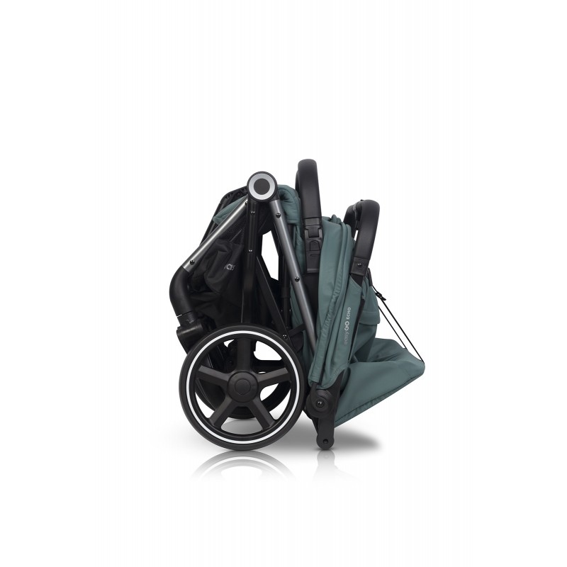 (dwa punkty składania) wózek ECHO składa się do rozmiaru niewielkiej kostki, mimo że po rozłożeniu jest dużym wygodnym wózkiem spacerowym. Co ważne, system składania obsługiwany jest jedną ręką, a wózek samodzielnie stoi po złożeniu. Elementy tapicerki nie dotykają do ziemi, więc nie zostaną przypadkowo zabrudzone. Wózek posiada również automatyczną blokadę, która pozwala wygodnie przenosić go po złożeniu.