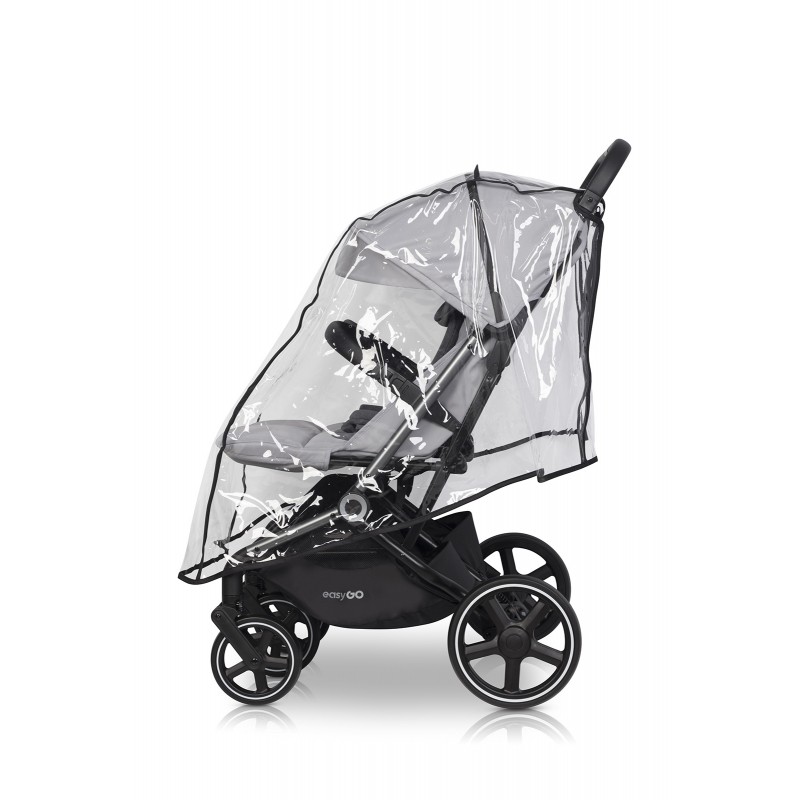 W zestawie z wózkiem otrzymujesz folię przeciwdeszczową