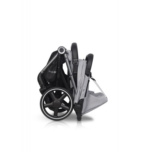 (dwa punkty składania) wózek ECHO składa się do rozmiaru niewielkiej kostki, mimo że po rozłożeniu jest dużym wygodnym wózkiem spacerowym. Co ważne, system składania obsługiwany jest jedną ręką, a wózek samodzielnie stoi po złożeniu. Elementy tapicerki nie dotykają do ziemi, więc nie zostaną przypadkowo zabrudzone. Wózek posiada również automatyczną blokadę, która pozwala wygodnie przenosić go po złożeniu.