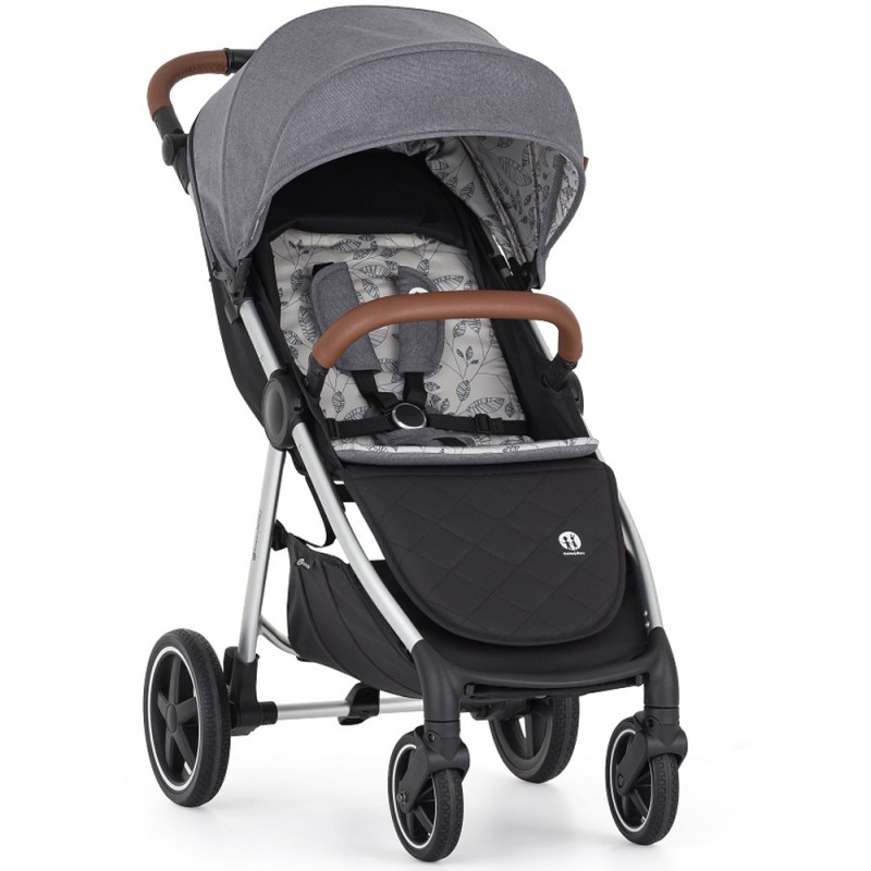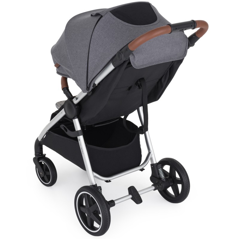 Płynnie regulowana rączka pozwala na idealne dopasowanie do wzrostu każdego rodzica. Obszyta jest elegancką elo-skórą co gwarantuje nam pewny chwyt oraz łatwość w utrzymaniu czystości. W rączce umieszczony został mechanizm do składania całego wózka do niewielkich rozmiarów. Dzięki temu wózek możemy złożyć na pomocą jednej ręki.