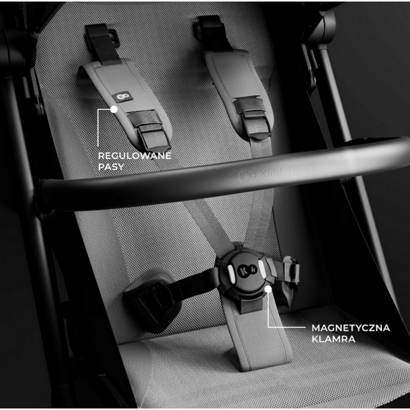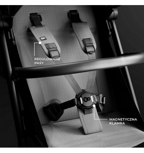 Magnetyczne, 5-punktowe pasy to gwarancja bezpieczeństwa i łatwości obsługi — ich zapinanie i odpinanie zajmuje zaledwie chwilę. Pasy posiadają także wygodną regulację wysokości, co pozwala na dostosowanie ich do wzrostu dziecka lub grubości ubrania, bez konieczności przepinania. Dodatkowo obrotowa barierka, która może być wypinana z obu stron, ułatwia wkładanie i wyjmowanie dziecka z wózka, zapewniając rodzicom maksymalny komfort.