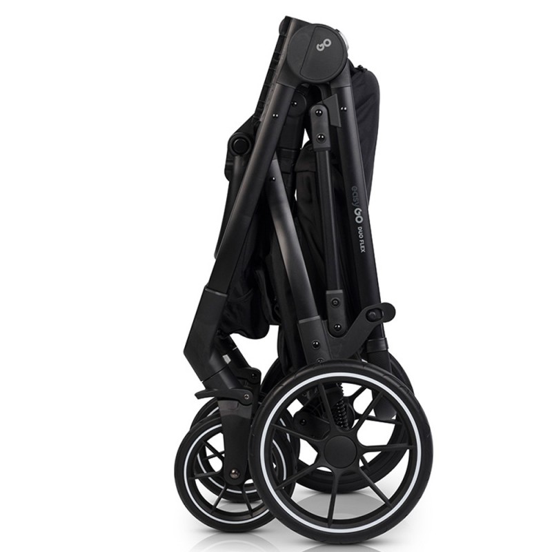 Innowacyjna budowa wózka pozwala na składanie wraz ze spacerówką. Duoflex mimo że jest wózkiem rozwojowym to po złożeniu nie zajmuje wiele miejsca. Tak złożony wózek zmieści się w każdym bagażniku.