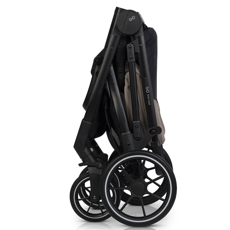 Innowacyjna budowa wózka pozwala na składanie wraz ze spacerówką. Duoflex mimo że jest wózkiem rozwojowym to po złożeniu nie zajmuje wiele miejsca. Tak złożony wózek zmieści się w każdym bagażniku.