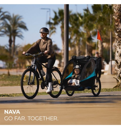 Z NAVA możesz zabrać na wyprawę jedno dziecko lub dwójkę maluchów (maksymalne obciążenie przy dwójce dzieci to aż 42,5 kg!) – każdy z pasażerów ma do dyspozycji wygodne miejsce z pasami bezpieczeństwa i zagłówkiem. Usztywniona, solidna podłoga umożliwia dzieciom samodzielne wchodzenie i wychodzenie z wózka – bez konieczności pomocy rodzica. To wygoda i niezależność w jednym.