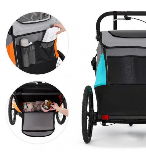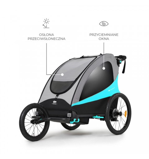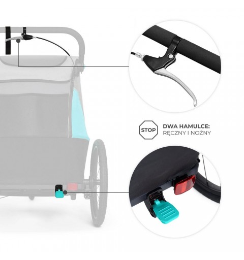 3w1: przyczepka rowerowa, wózek spacerowy i wózek do biegania Przyczepka rowerowa z hamulcami tarczowymi, która w szybki i prosty sposób zmienić się może w profesjonalny wózek biegowy i wózek spacerowy dwa dwójki dzieci.