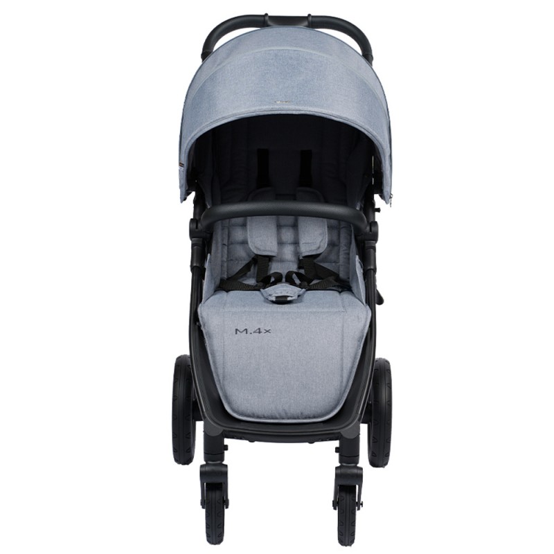 Aby jak najlepiej zabezpieczyć dziecko, a także szybko zapiąć w siedzisku, M.4x posiada 5-punktowy system bezpieczeństwa i bezstopniowo regulowane szelki, które można regulować jedną ręką. Obrotowy pałąk bezpieczeństwa po obu stronach można całkowicie zdjąć, aby zainstalować gondole (bez adapterów) lub fotelik samochodowy (z adapterami).